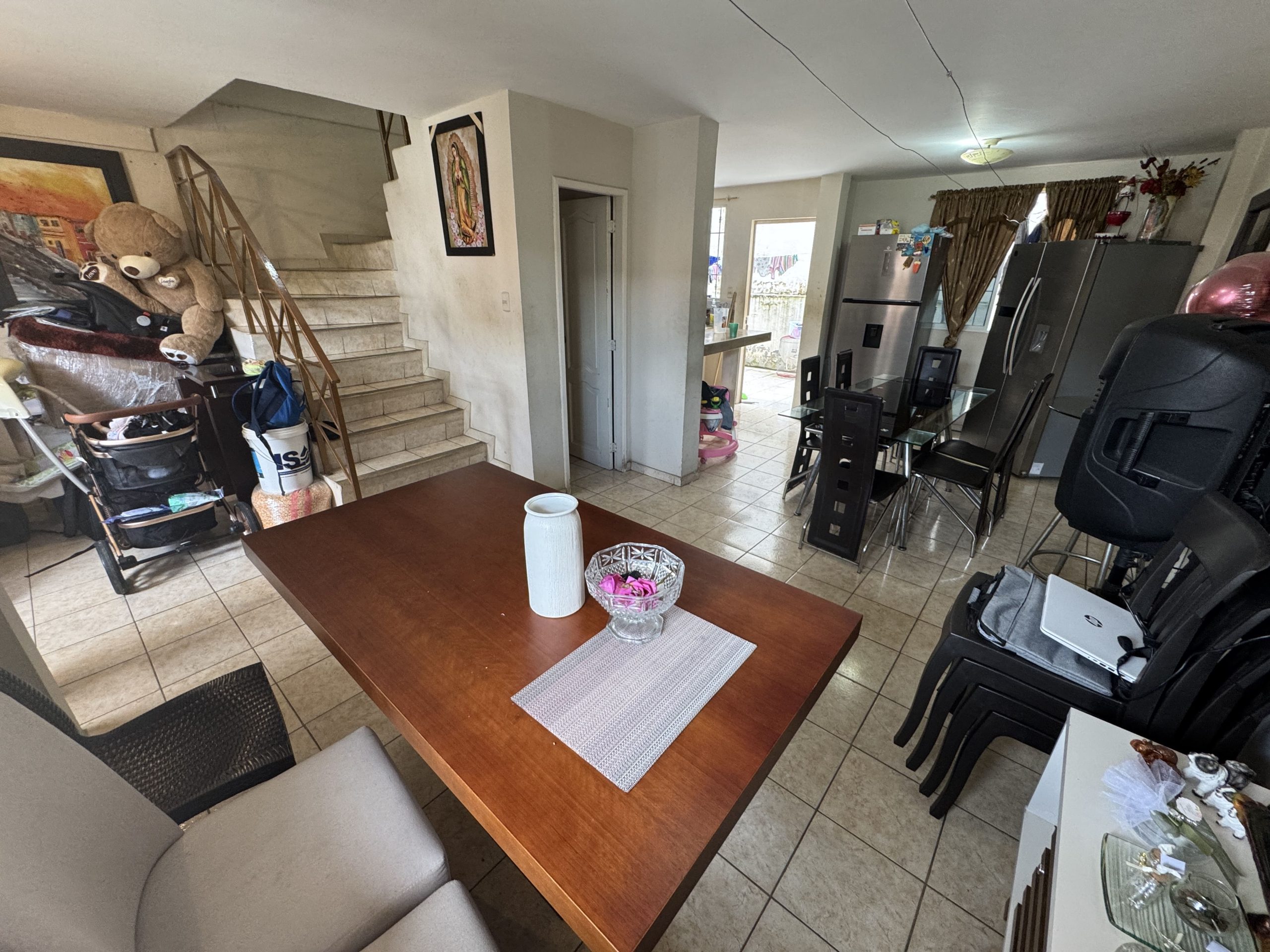 - Planta baja: sala, comedor, cocina con anaqueles altos y bajos, patio con área de lavandería.